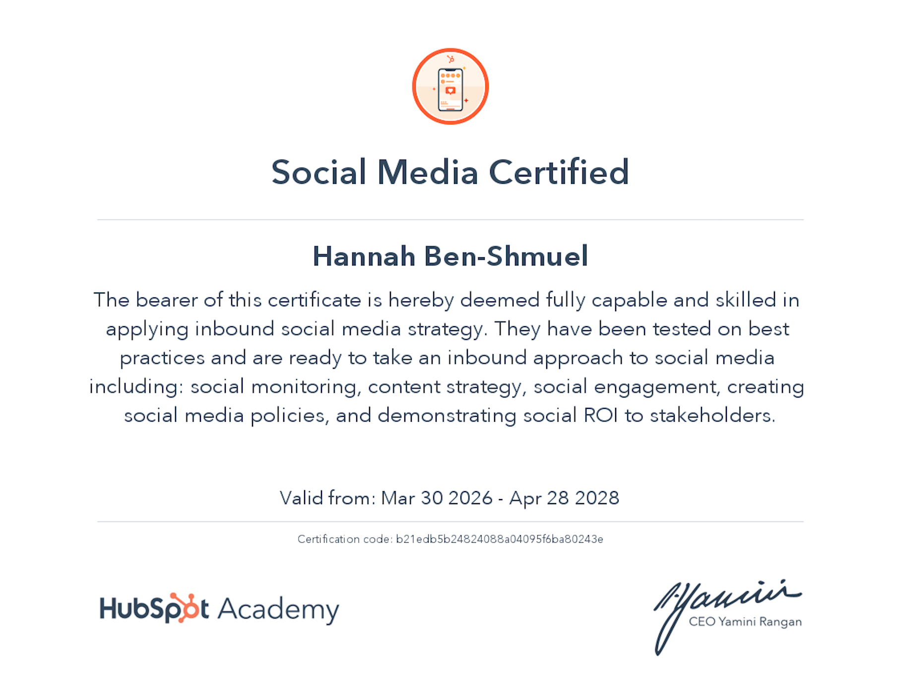 Hubspot: Social Media Marketing Certification
